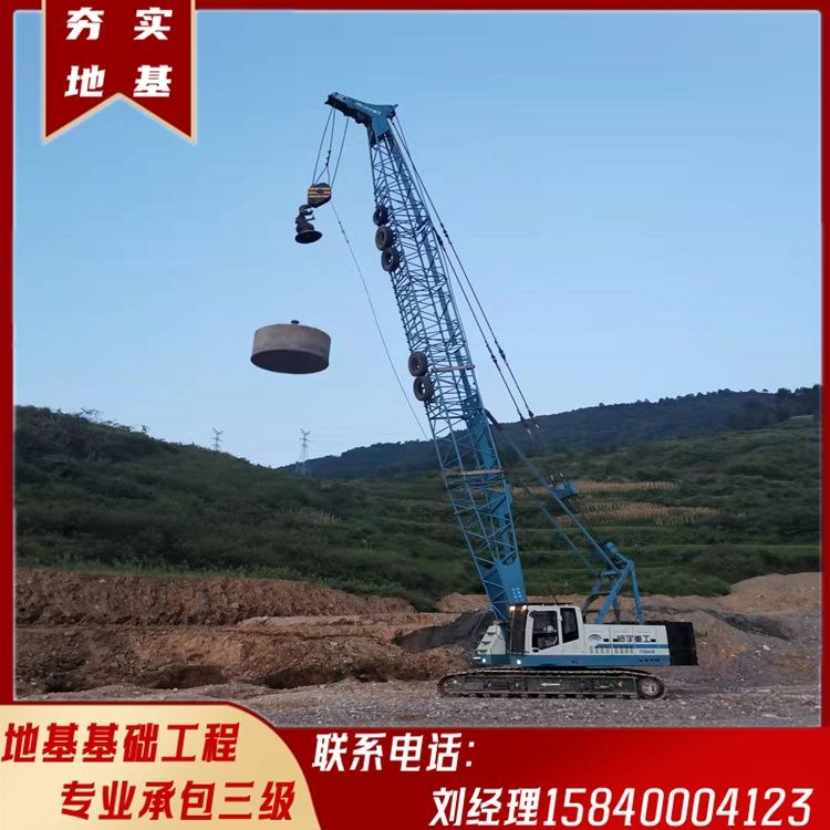根据工程地质勘察报告,结合设备性能参数,制定分区分级的强夯方案,并通过试夯确定最佳施工参数。施工过程中应做好质量控制记录,确保每个夯点的能量传递符合设计要求。