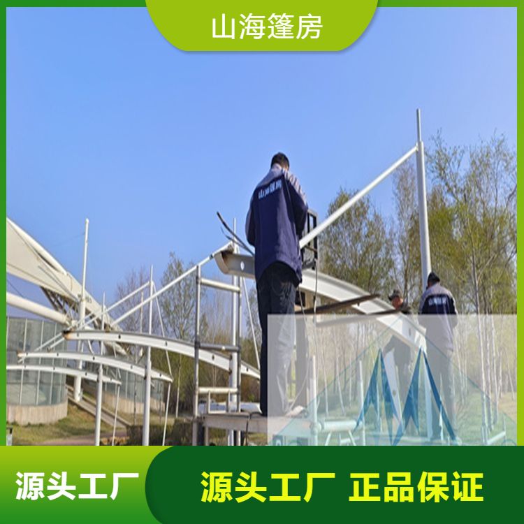 3. 膜结构:造型多样且自重轻,安装便捷,但需注意定期检查张拉系统